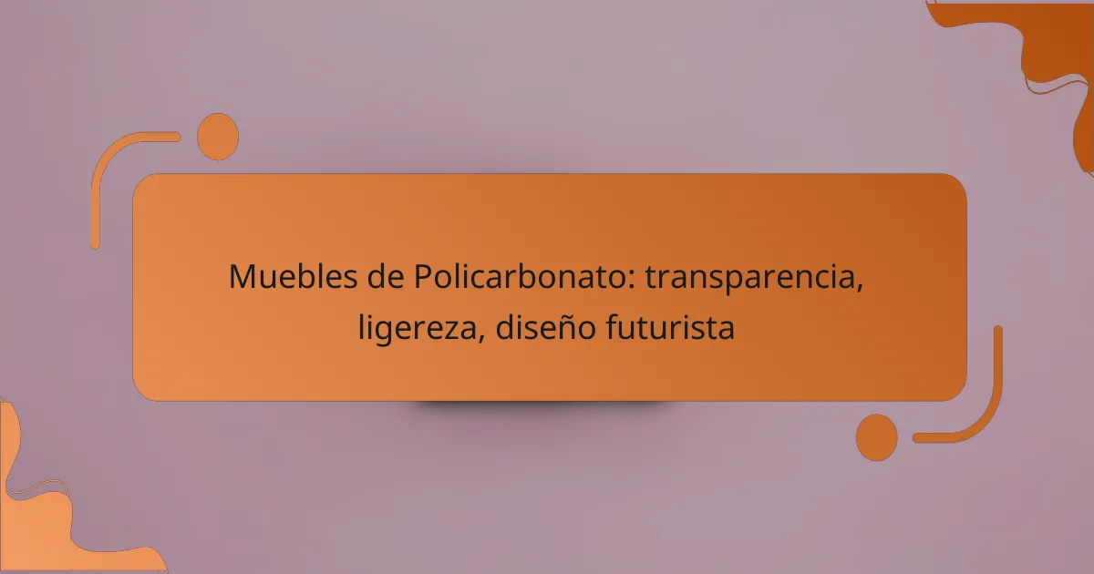 Los muebles de policarbonato son piezas de mobiliario fabricadas con un material plástico transparente y ligero, conocido por su resistencia y versatilidad en el diseño. Este tipo de muebles se caracteriza por su estética moderna y futurista, siendo ideales para espacios contemporáneos.